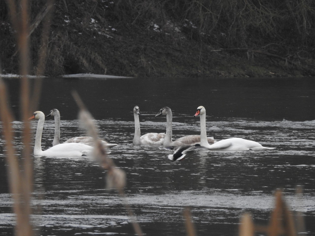 - Łabędź niemy - 7 osobników.